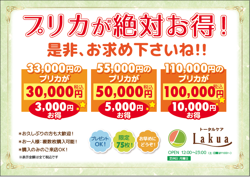 毎日の疲れをぜひ癒してください。当日急な施術をご希望される方は、お電話で!!